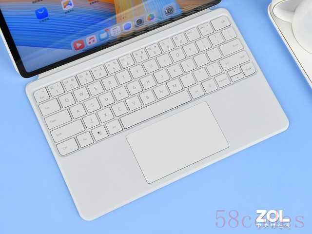全新智能触控键盘拥有1.6mm的PC级键盘键程和大尺寸全域按压触控板,通过荣耀平板V8 Pro机身后盖的触点与平板连接。该键盘同样支持通过MagicOS 7.0的信任环能力在手机应用内进行输入。