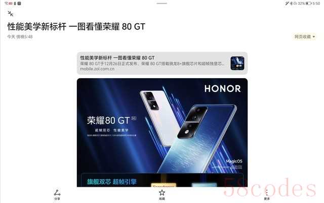 荣耀超级笔记实现了笔记功能与MagicOS 7.0系统的深度整合,从而支持了全局收藏、视频摘录、录音笔记三大效率功能。全局收藏功能让用户在网上浏览时可以对网页文章进行收藏,只需三指下滑,即可将当前网页的内容保存到本地的笔记APP内。