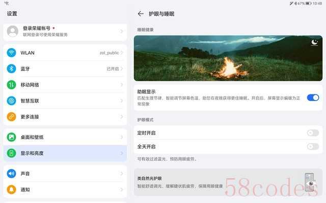 荣耀平板V8 Pro的类自然光护眼功能,可模拟自然光的动态变化,在用户长时间使用产生用眼疲劳的情况下产生无感微调的律动亮度,刺激眼部睫状肌调节,提升眼底血液流通,缓解眼部疲劳。同时,荣耀平板V8 Pro也内置了自研助眠显示功能,到了夜晚,屏幕色温会匹配人体褪黑素分泌规律逐渐变暖,因而达到避免干扰夜间人体正常分泌褪黑素,缓解熬夜党的深夜焦虑,起到有效助眠的作用。