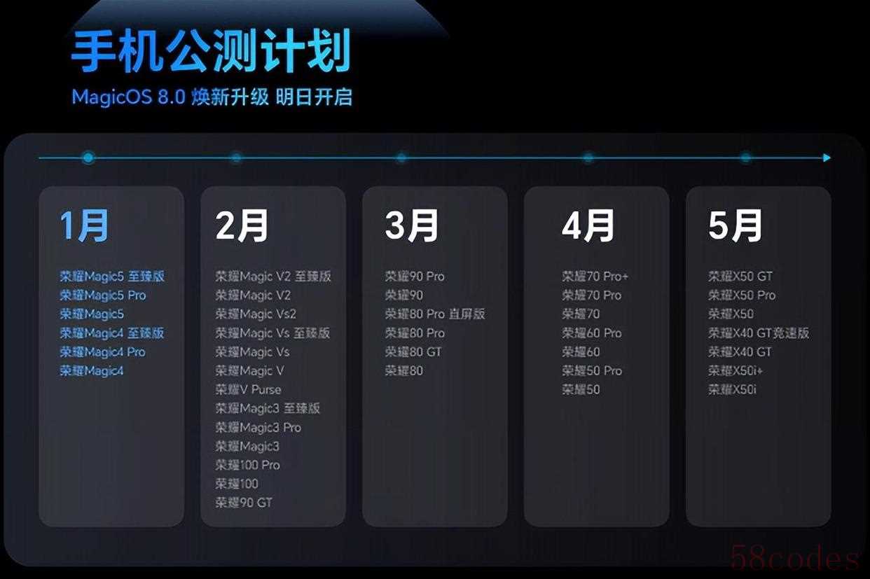 这几天,荣耀MagicOS 8.0突然更新,已经正式公测,总共覆盖了42款荣耀主流手机和平板,上半年将全部推送完成。按照荣耀官方适配计划如下: