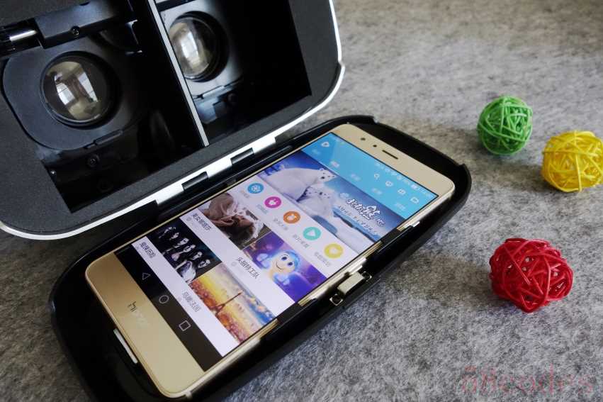 放置好后合盖准备佩戴,这里就不在详细说明VR眼镜的佩戴和使用,主要目的是测试荣耀V8的屏显效果。