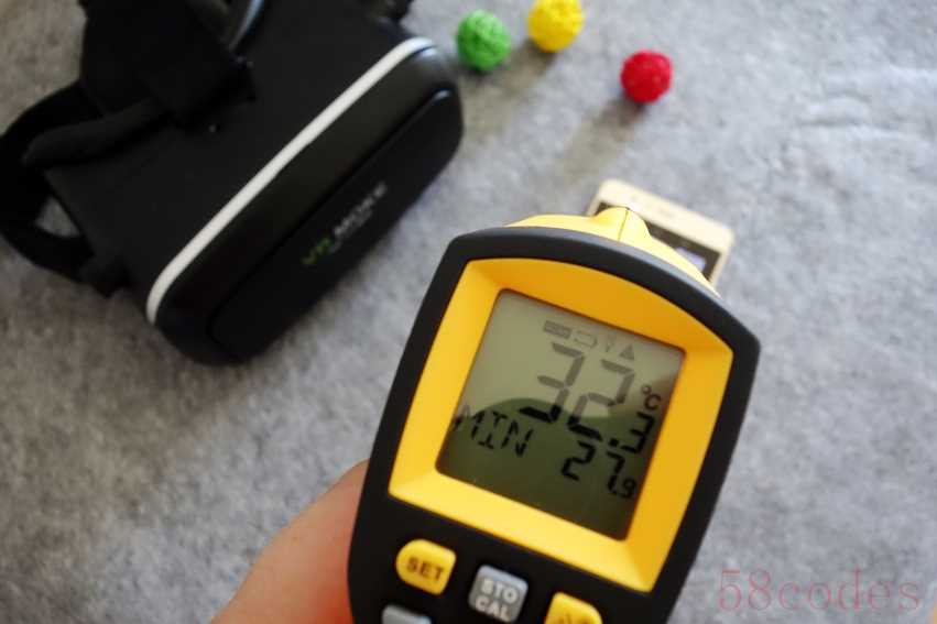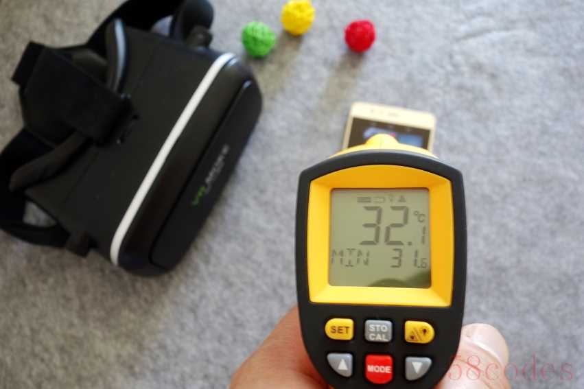 拿出我事先准备好的红外测温仪准备开始,测试时间是从使用VR眼镜开始,一直到结束后的大约25分钟的温度测试。