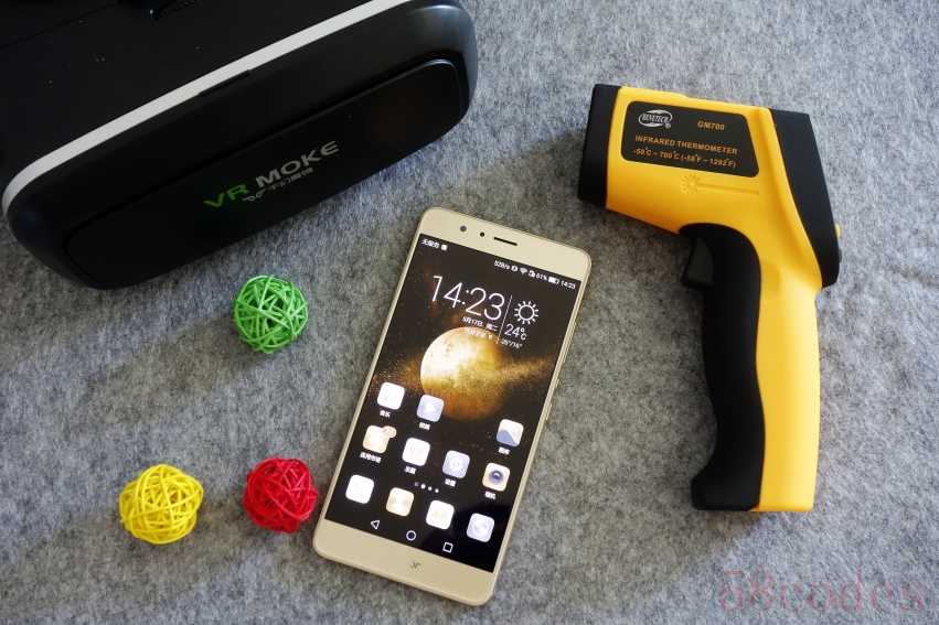 通过红外线温度测试仪,针对荣耀V8观看23分钟3D和陀螺仪的使用效果后,温度测试可以做出一个基本的产品发热结论,正常情况下机身问题一般是在26度-28度左右,笔者的室内温度为22度左右,通过23分钟的体验测试,温度有3-4度的升温变化,小伙伴们也许都知道,任何物体温度的发热情况,一般随着你的使用环境温度和外接因素的影响改变而改变,笔者家中问题基本处于恒温状态下,自然不会对手机发热产生过多影响,而手机通过开启3D播放效果后,机器内部自身处理器运算能力负担加重,3D线性加速效果和陀螺仪也会增加产品的功耗,所以,产品自身升温属于正常情况,且荣耀V8在观看了23分钟效果后,温度只提升了3-4度左右,人手的感知会感到略微发热,也是属于正常的,因为V8自身是全金属外壳,金属的传热导速度比较快,所以,荣耀V8这个发热的情况是属于正常范畴的,大家不用担心它会像某米一样,烫手了。