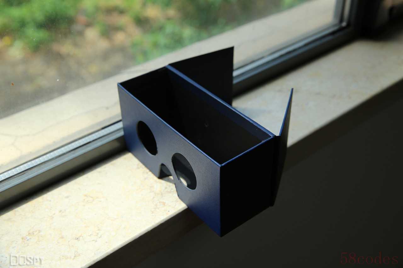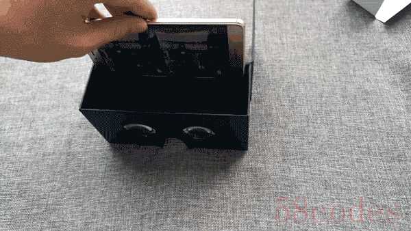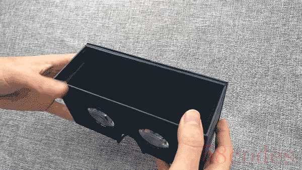 2.安装好球面镜和鼻子护垫后,接着掀起包装盒另一侧的盖板,便直接变成了一个VR眼镜。
