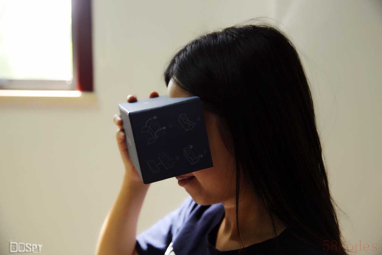 按照上面三个步骤,一个VR眼镜就由包装盒“改造”成功了。虽然荣耀V8的包装盒改装的VR眼镜较为简陋,但已经能满足大部分尝鲜VR全景视频的需要。观看视频时,有着很强的临场感,而且能看周围360度的画面,头部转动便能切换不同的视角。看我们的妹子玩得多开心!