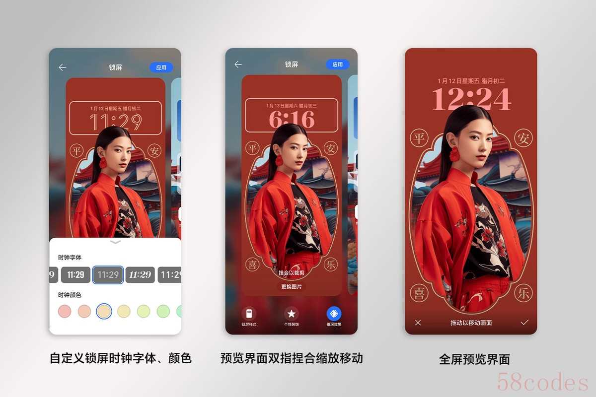 4、自定义锁屏时钟字体、颜色 点击时钟区域,进入自定义锁屏时钟字体和和颜色设置页面;5、调整图片位置&查看预览效果 您可以在壁纸预览界面双指捏合缩放和移动,也可以点击壁纸预览界面进入全屏预览模式,进行位置调整并预览显示效果;三、桌面壁纸如何设置?在魔法锁屏壁纸编辑页,您可选择进入桌面壁纸编辑页,可通过 【跟随锁屏】【颜色】【选择壁纸】选择桌面壁纸类型,不同壁纸类型效果如下描述;当选择跟随锁屏或选择壁纸时,【模糊】功能可用,您可选择打开或关闭模糊功能,模糊功能打开时,可调节模糊程度;