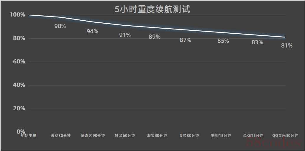 经过中关村在线五小时重度续航测试,iQOONeo11还能剩余81%的电量,就算周末假期猛猛上分也不用担心电量问题。