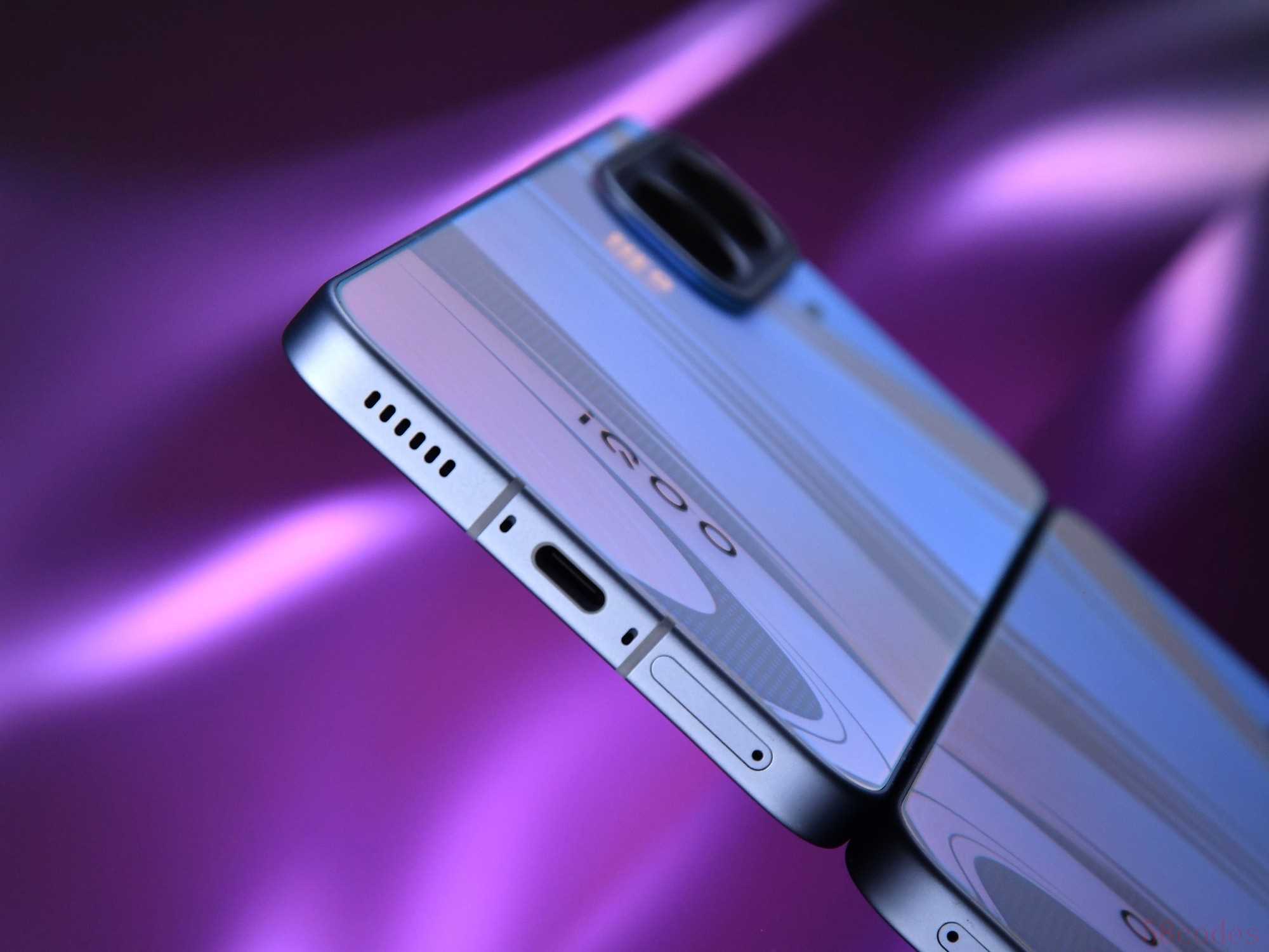iQOO Neo11的机身右侧配备了音量键和电源键,底部从左至右依次为SIM卡槽、USB-C接口,以及对称式立体双扬。
