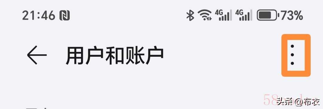 第三个,还是在设置这里,找到账户和用户并点击,接着,点开上面的三个点,