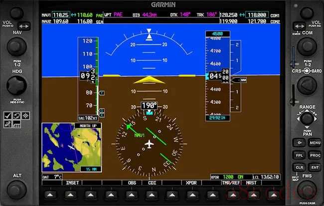 在大多数带有玻璃驾驶舱(意思是屏幕而不是仪表)的飞机上,都会有一个按钮,上面写着“CDI”或“CDI 源”。它可能是一个软键,也可能是一个硬按钮,取决于飞机。点击它,直到它附近的任何区域显示 GPS,并且在许多情况下变成粉红色。此时,您只需使用小CDI(Course Deviation Indicator)即可飞行。那是带有一条线的箭头,它滑向两侧。你应该让箭头的顶部指向前方,如果箭头在中间断了,就朝它断的方向飞——例如,如果太靠右而不能成直线,请转动飞机面对它并飞行,直到它与箭头形成一条直线,然后转动使箭头再次指向正前方。如果你想使用你的自动驾驶仪——它是一组按钮,上面写着 ALT和NAV 以及AP和FD之类的东西。点击显示 NAV(在大多数飞机中)的按钮,然后点击 AP按钮。Boom,自动驾驶仪会跟随你的路线。