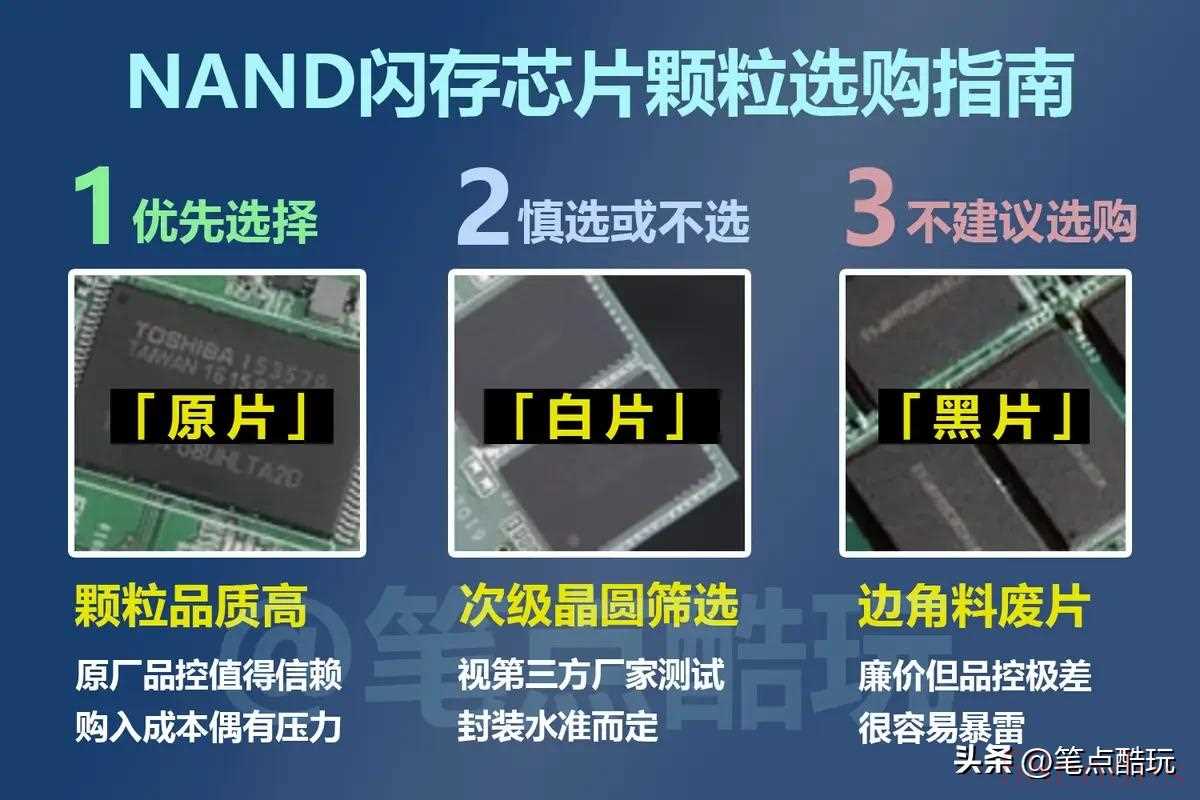黑片不用说了,可以把它们视为NAND闪存中的边角料,废料瑕疵多,容易暴雷,可以说大多数价格低廉的不知名品牌SSD都可能有黑片藏身其中,敬请远离,重要的话多说几遍。