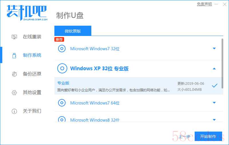 u盘不仅可以做存储文件的可移动硬盘,还可以制作成启动盘用于修复或者安装系统。有网友想了解u盘怎么安装win10系统,下面小编就给大家分享一个简单的借助win10安装教程u盘重装系统步骤演示 - 装机吧。  1、先关闭我们电脑上的杀毒软件以防阻止安装步骤,然后打开装机吧重装系统工具。插入u盘后点击“制作系统”—“开始制作”。