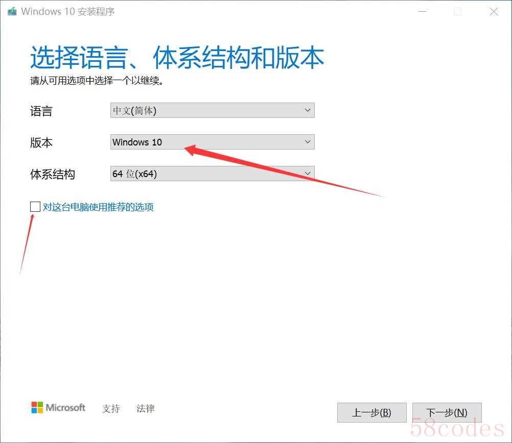 - 选择你需要的Windows 10语言、体系结构和版本。