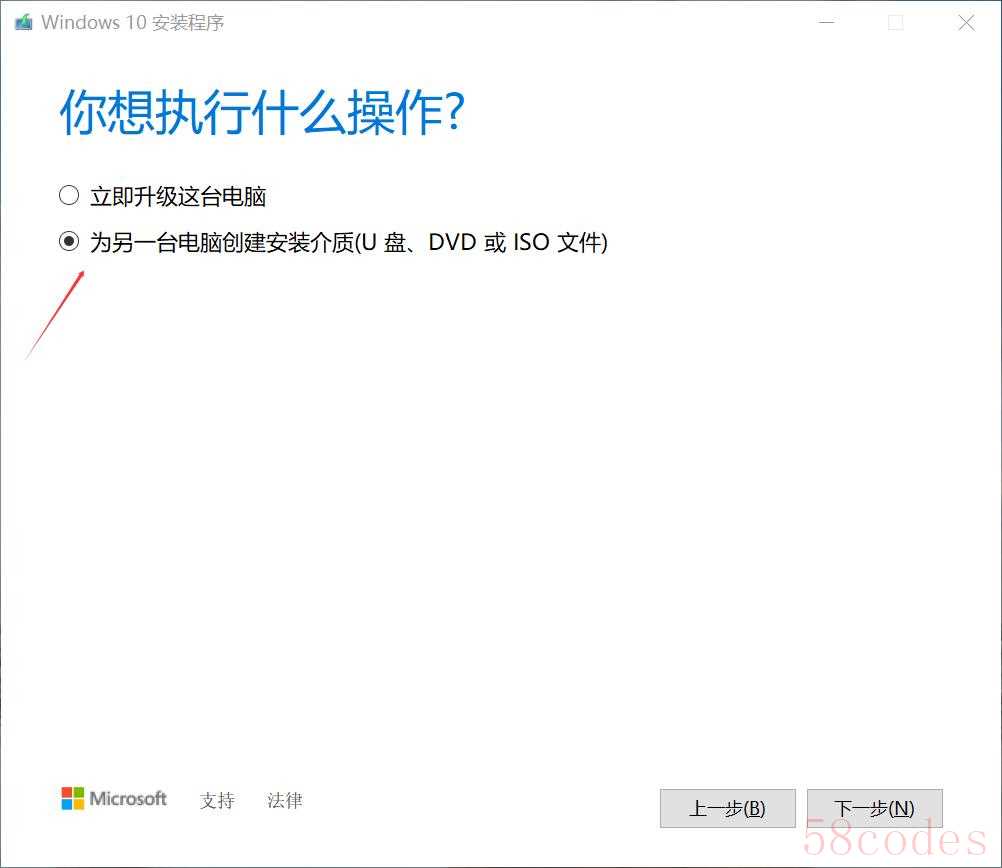 双击安装包打开安装程序,选择为另一台电脑创建安装介质,点击下一步