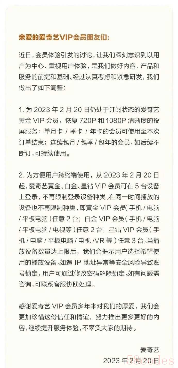 此外,爱奇艺也不再限制登录设备种类,所有等级会员账号均可在5台设备上登陆。