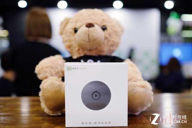 领导给带回来的爱奇艺电视果3黑色款(嗯,图中的小熊公仔也带回来了)