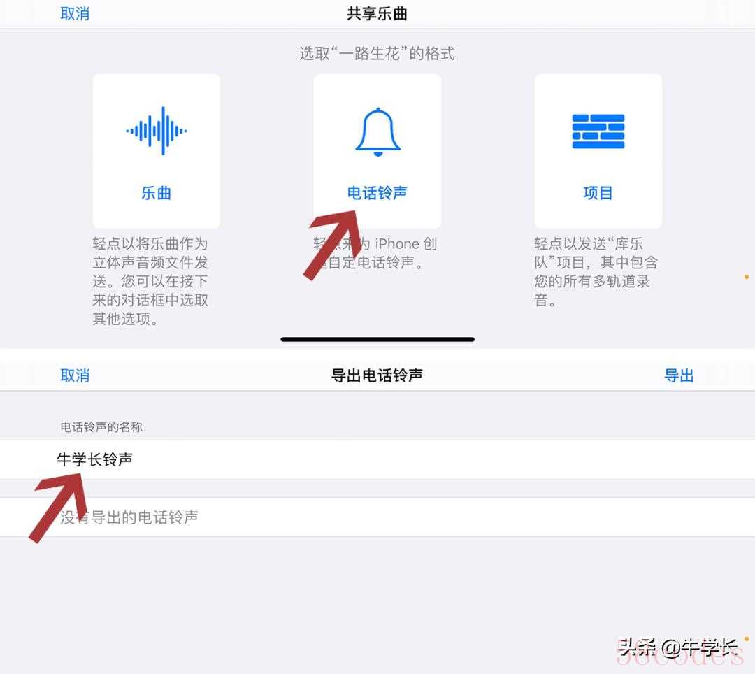 点击“继续”,还可自定义铃声的名称,再点击右上角的导出铃声,即可进行下一步。