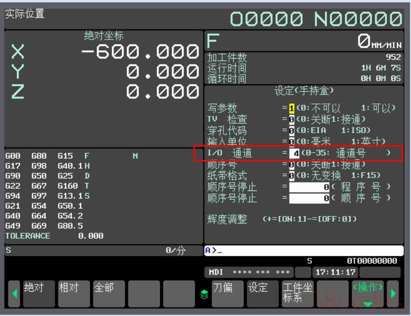 5、程序拖入后,我们把文件FANUCPRG.bin文件拷入CF卡,然后把CF卡插如到系统上,并确认系统的IO通道参数No.20的数值为4,如果设置不正确,请按下MDI面板上的“OFFSET”键进行修改。