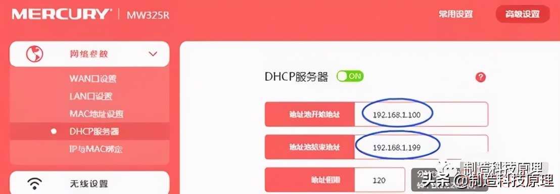 首先,主路由正常设置好,进入主路由的界面,点击高级设置-网络参数-DHCP服务器,查看一下地址池的开始地址和结束地址,本文为192.168.1.100-199