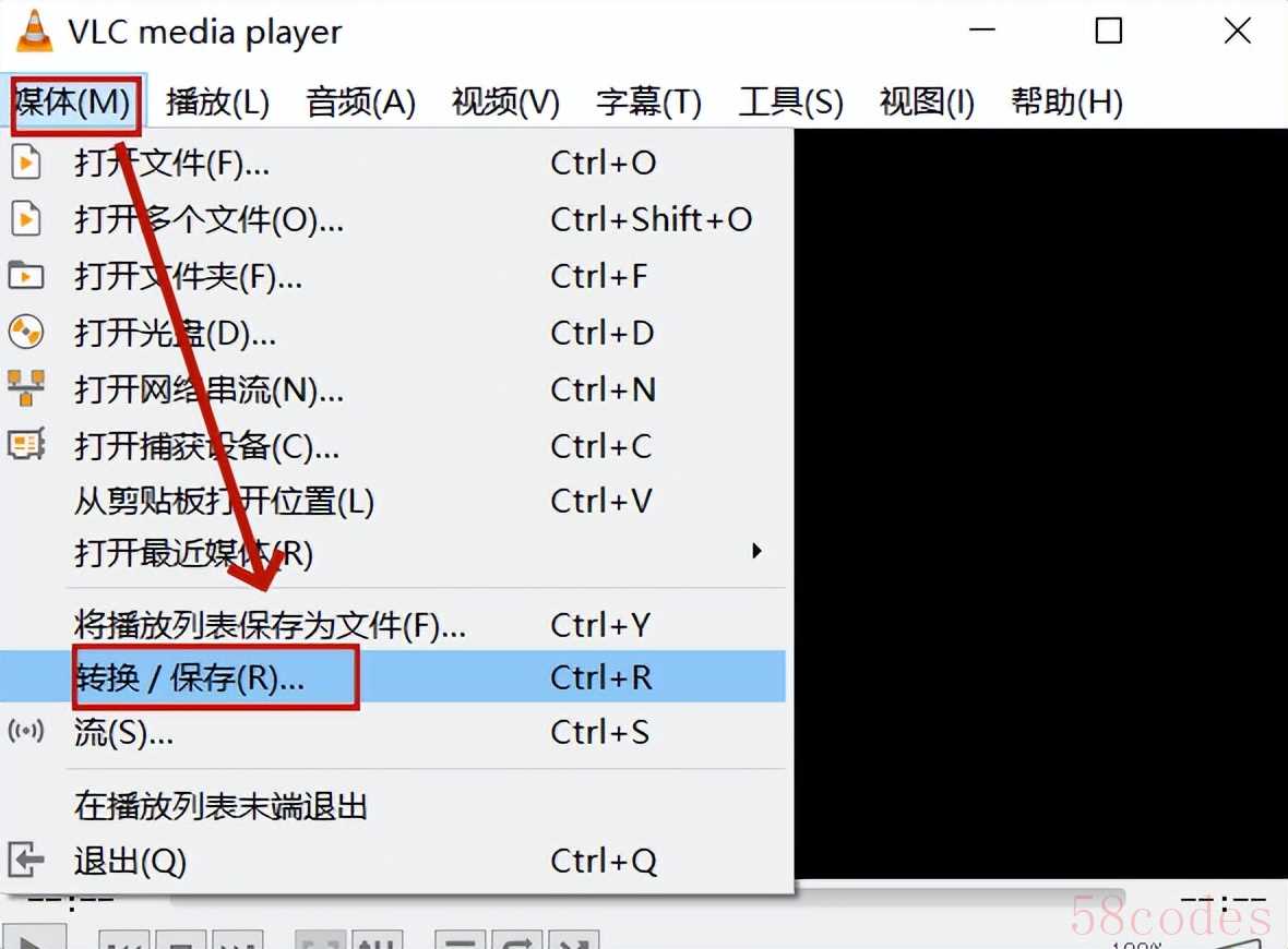 步骤1、打开VLC Media Player,在左上方的“媒体”出点击“转换”;