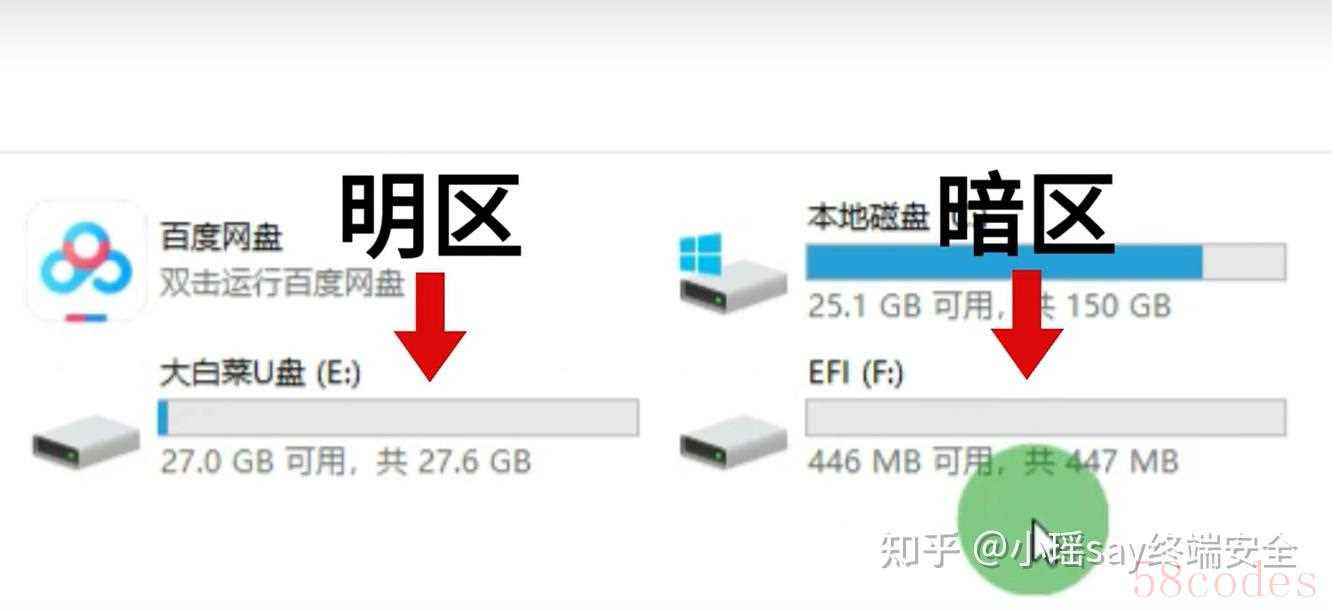 明区放普通文件,谁都能看;暗区存机密资料,得输密码才能打开,而且只有装了客户端的授权电脑能识别暗区。