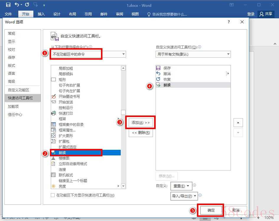 如果有小伙伴没有找到这个功能的话,我们可以在【文件】-【Word选项】中将该功能添加到工具栏中,接着选择文本再点击图标,这样的话Word就会帮我们将文字朗读出来了。