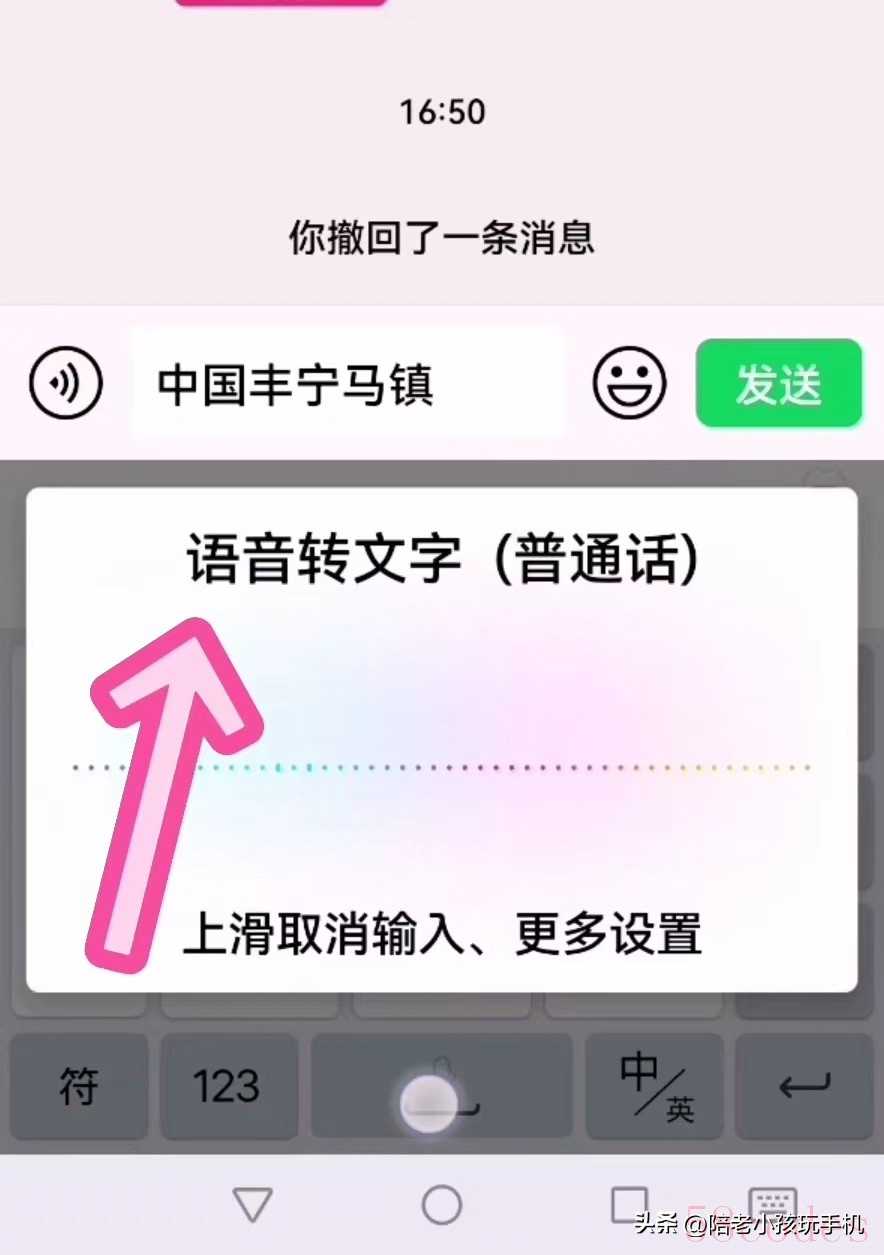 按住下面的 【话筒】标志,将手机靠近嘴巴说话,一边说话一边会显示【语音转文字】(普通话)