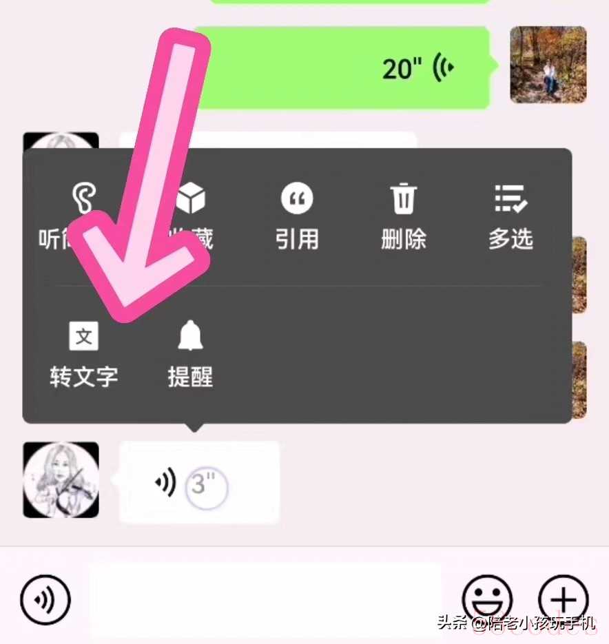 如果是收到朋友发来的语音,您不方便收听的时候,也可以长按语音,然后选择【转文字】,这样语音就转换成文字了!