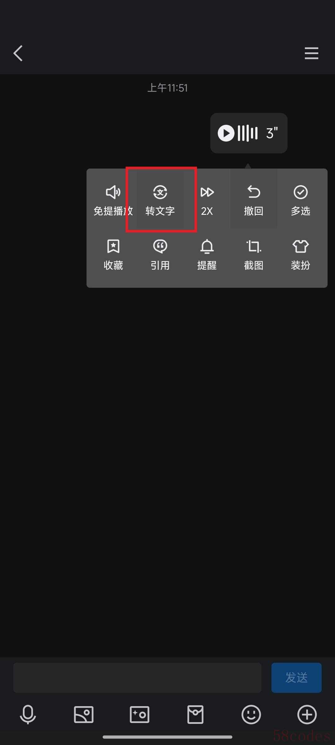 然后长按音频,选择【转文字】就能将音频中的内容转换成文字了。