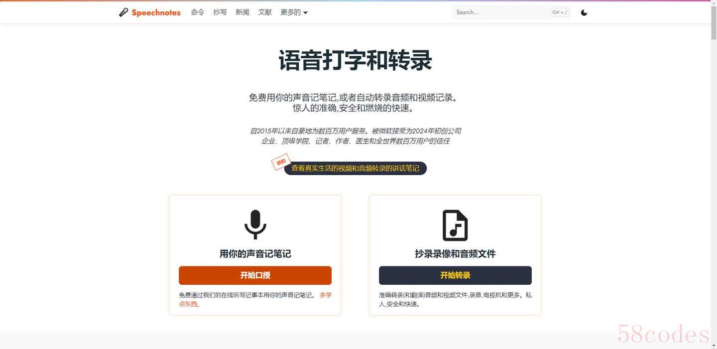 一款国外的在线语音转文字工具,可以使用浏览器插件翻译一下,网站提供音频和视频转录、翻译及语音输入笔记功能,可以将录音后的音频转换成文字,适用于日常生活中的多种场景,而且网站会保障用户的隐私,录音在转录完成后会自动删除,不会进行人工复核。