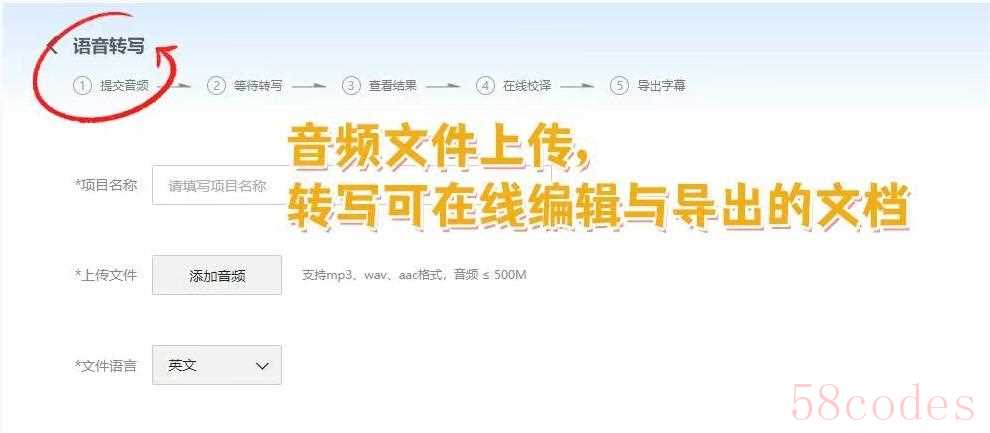 3. "上传文件:" 点击“上传文件”按钮,选择要转换的录音文件。