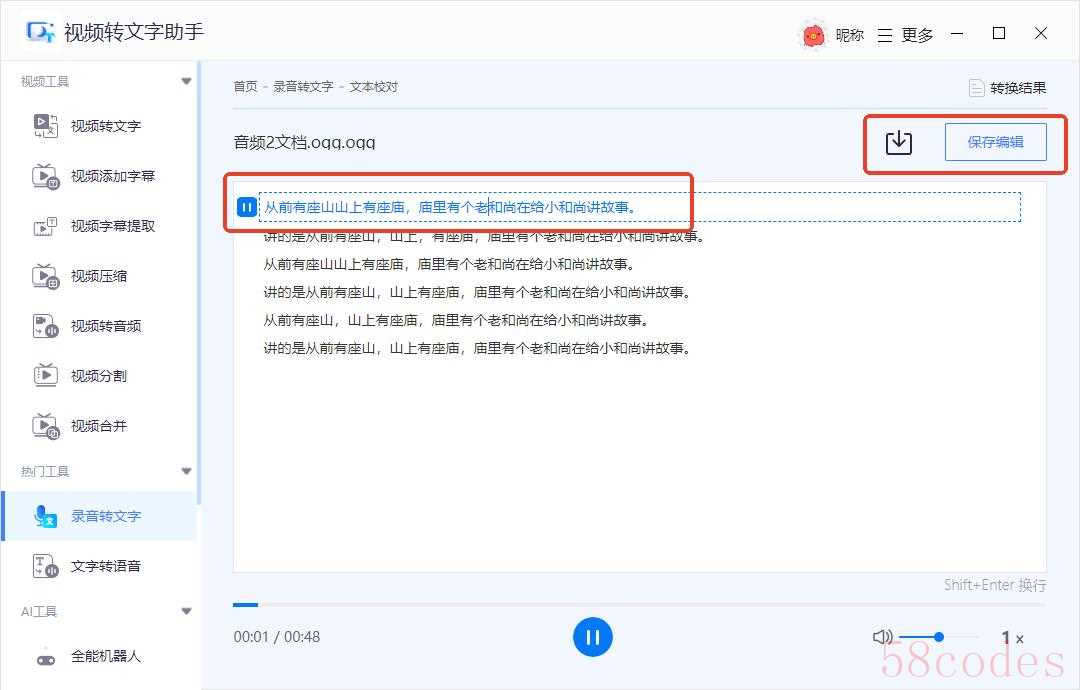 也可以点击识别结果旁边的【文本校对】,可以编辑识别后的文字、调整格式以及语音播放文字内容等,感觉合适的话可以点击下载的按钮或者【保存编辑】就能将编辑后的文字保存下来。