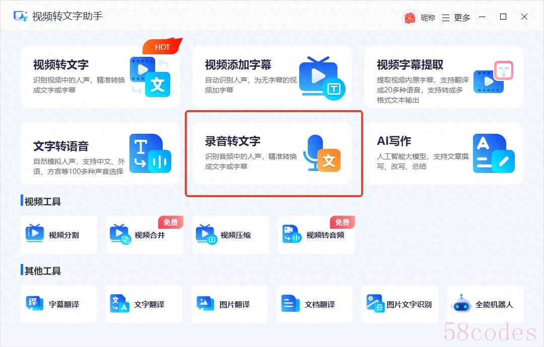 打开软件,选择首页的【录音转文字】,导入录音文件,可以上传MP3、wav、aac等格式。