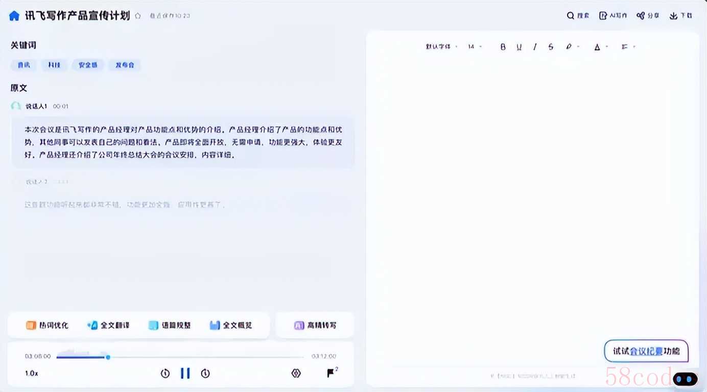 一个在线的文字和语音相互转化的网站,支持文字转语音、语音转文字双向处理,提供上百种AI主播音色,只需要输入文字,就能快速得到流畅的语音,很适合用来制作课件、广告宣传等。