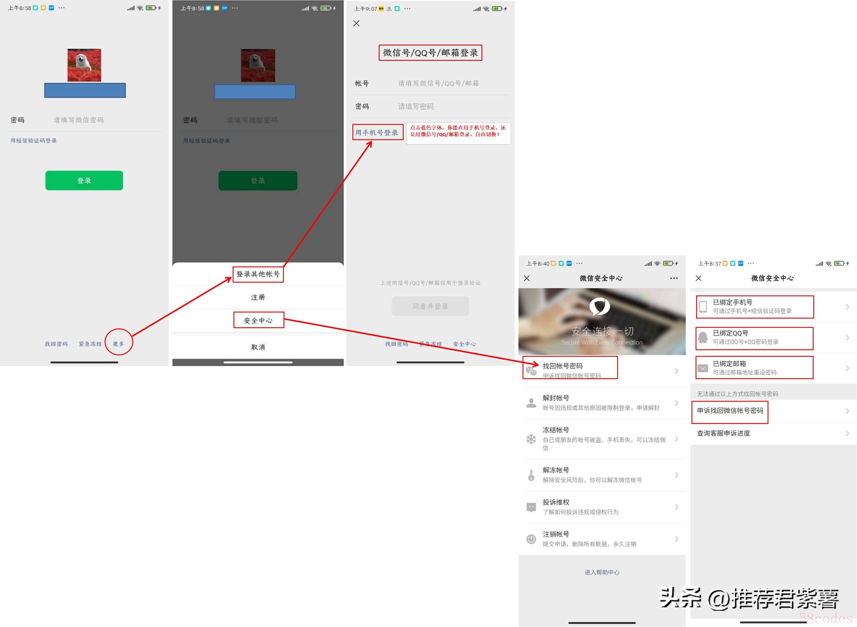 趁现在赶紧要么把自己的微信密码记下来,要么把QQ和邮箱都绑定一遍,最好的方法是用个本子把它们通通手写下来,不怕一万就怕万一。