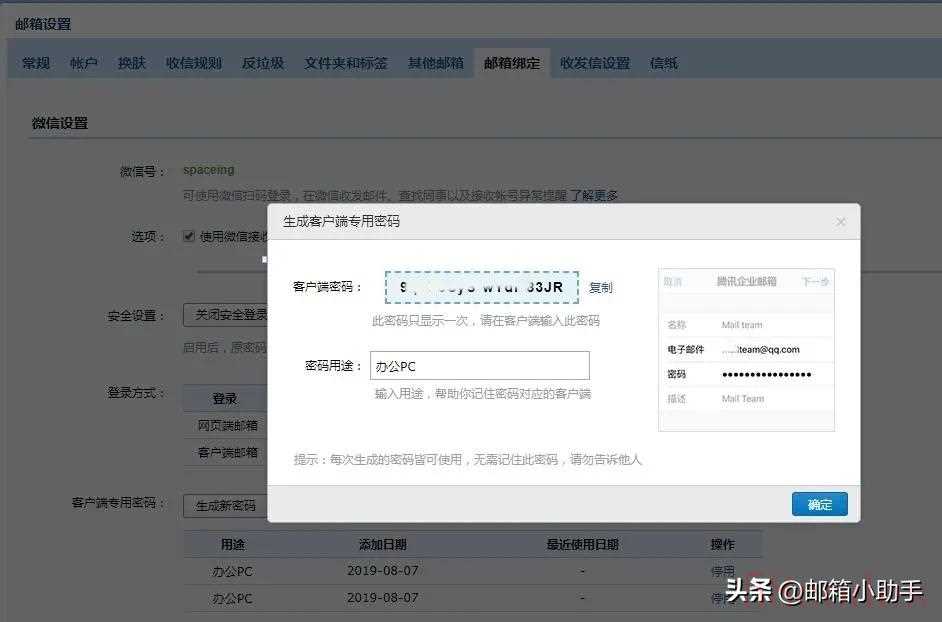 腾讯邮箱如何绑定微信,开启安全登录获取客户端专用密码?