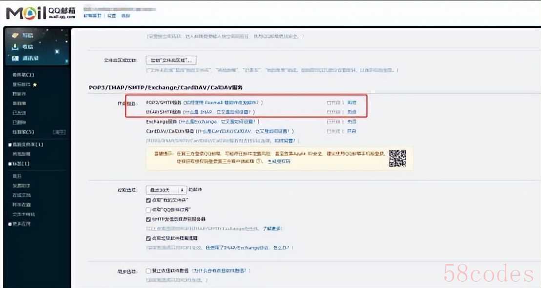 POP3/IMAP/SMTP/Exchange/CardDAV/CalDAV 服务页面, 开启 POP3 与 IMAP 服务。