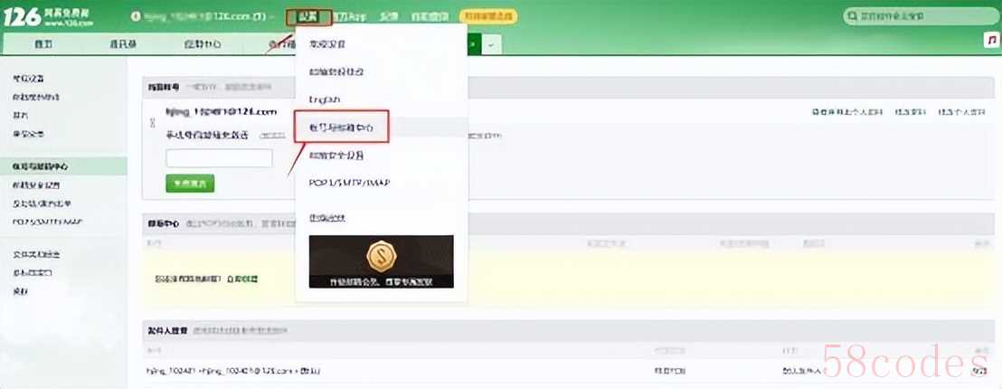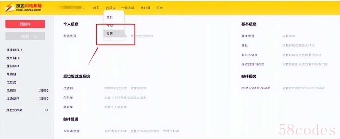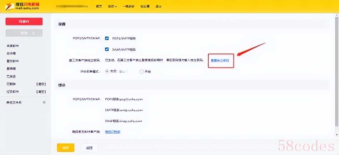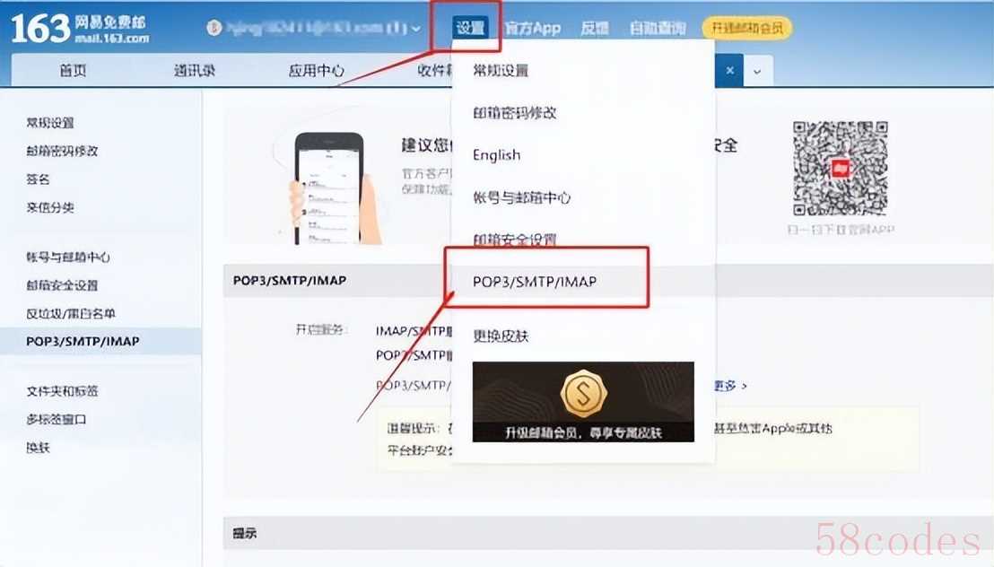 2、点击页面上方【设置】按钮,点击【POP/IMAP/SMTP】
