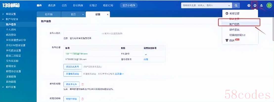 3、点击页面右上角齿轮图标,点击【账户信息】,进入设置页面