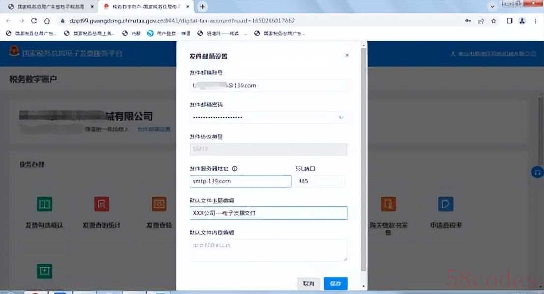 4、填写相关信息至邮件发送设置(注意图中密码不是邮箱密码,是第三方客户 端授权码)