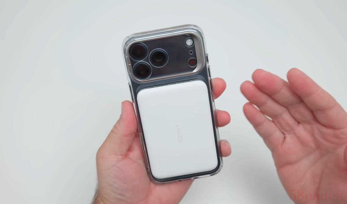 除了充电器,Anker 今年的新款迷你充电宝也很值得入手。它是全球最薄的 5000 毫安时 MagSafe 充电宝(G2 版本),便携性拉满,重量只有 4.3 盎司(约 122 克)。和苹果为 iPhone Air 设计的 MagSafe 充电宝不同,它能兼容所有 iPhone 17 机型,不只是 iPhone Air—— 既能像这样吸在 17 Pro Max 背面充电,有 iPhone Air 的话也能用,兼容性很好。而且它的容量有 5000 毫安时,比苹果那款 3000 毫安时的大不少;充电速度也更快,能达到 15 瓦,苹果的只有 12 瓦;价格还更便宜,差不多是苹果的一半,今年选它准没错。它用 USB-C 充电,侧面有电量指示灯,能把手机完全充满 —— 不像苹果那款给 iPhone Air 充电还充不满,给 17 Pro Max 充也差不多能充满一次。要是出门需要临时补电,带它就够了,续航能撑好几天。对了,它的包装盒里还送一根充电线,相当于多了根备用线,很划算。