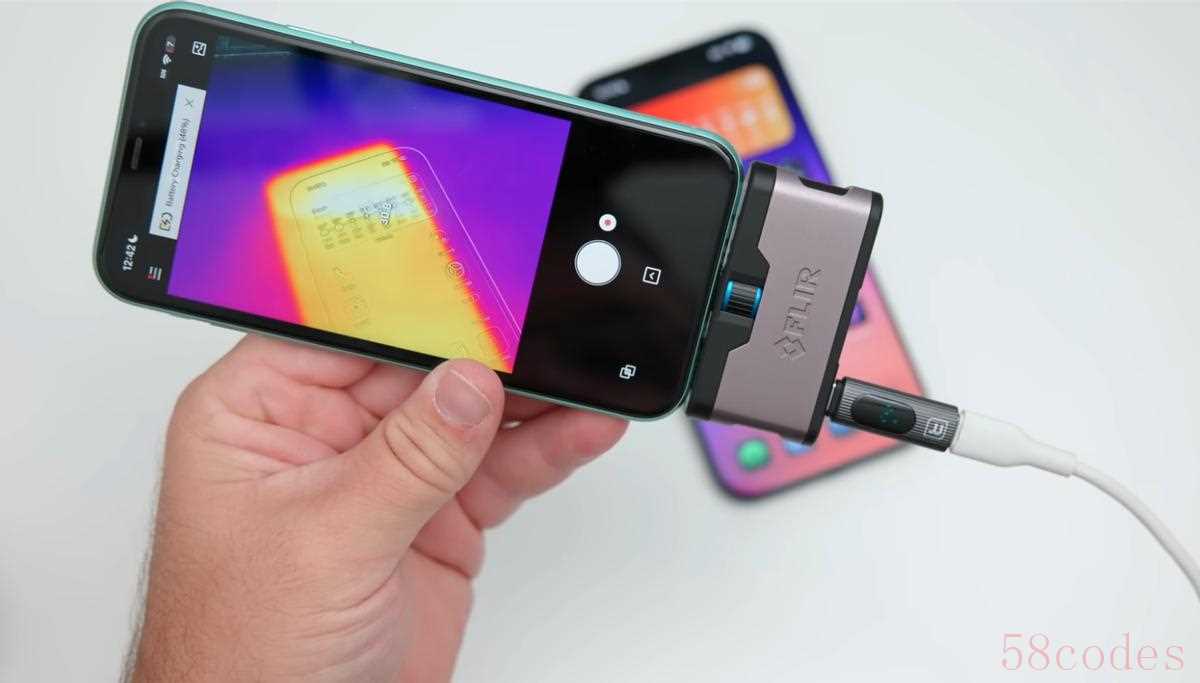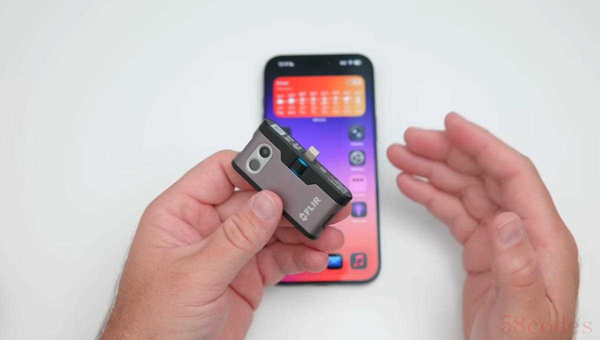 最后这个配件,我手上的版本不是 USB-C 接口,但现在有同款 USB-C 版,我正打算买一个。它是 Fleer 热成像相机,这个是 Lightning 接口的,插在 iPhone 上就能用,能显示设备的热成像和温度。插上之后,连接成功就能看到热成像画面 —— 比如能看到 iPhone 17 Pro Max 的热成像效果,把手放过来也能显示。当前温度显示 31 摄氏度,在设置里还能改成华氏度,按自己的习惯来就行。现在切换成华氏度,显示 87 华氏度,用它能直观看到温度情况。很多人问我用的是什么热成像相机,我会把链接放在简介里。