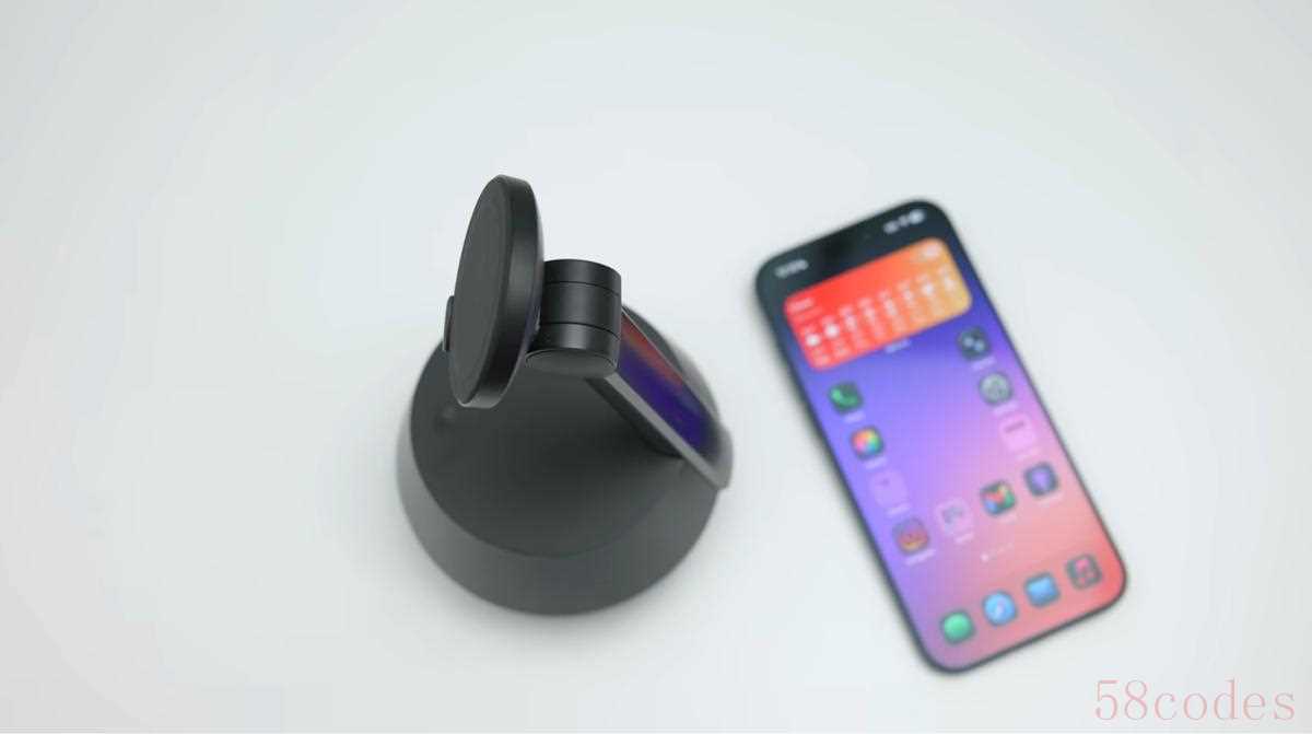 还有几个配件想跟大家分享。比如接打电话或拍视频时能用的 Bellein 自动跟踪支架,这款是带扩展坞套件的专业版,支持苹果扩展坞协议,能自动转动。它需要用 USB-C 供电,我先插上电,你们看,灯已经亮了,说明开机了。把手机靠近这个小图标,会显示 “跟踪扩展坞”,正在搜索设备,等它连接成功,就能用它来跟踪拍摄了。第一次用需要配置配件,可能要等一会儿 —— 我之前在 16 Pro Max 上用过,开视频会议或者需要解放双手演示东西时,它能自动跟拍。