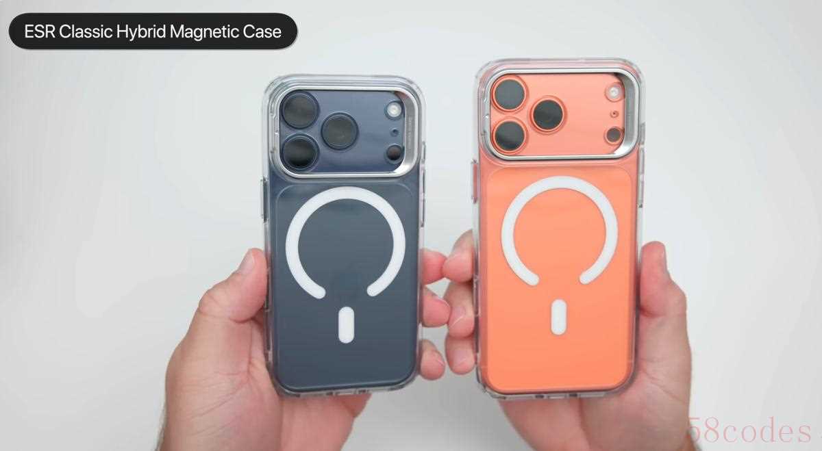 接下来是手机壳。想保护 iPhone、让它保持最佳状态,就得选个好壳。本次赞助商 ESR 推出的经典混合磁吸壳,防护力很给力,能承受 11 英尺(约 3.35 米)的跌落。它有 1.2 毫米的凸起边框,能保护屏幕;摄像头部分是双层防护,不仅有全覆盖的镜,还有锌合金镜头保护盖。