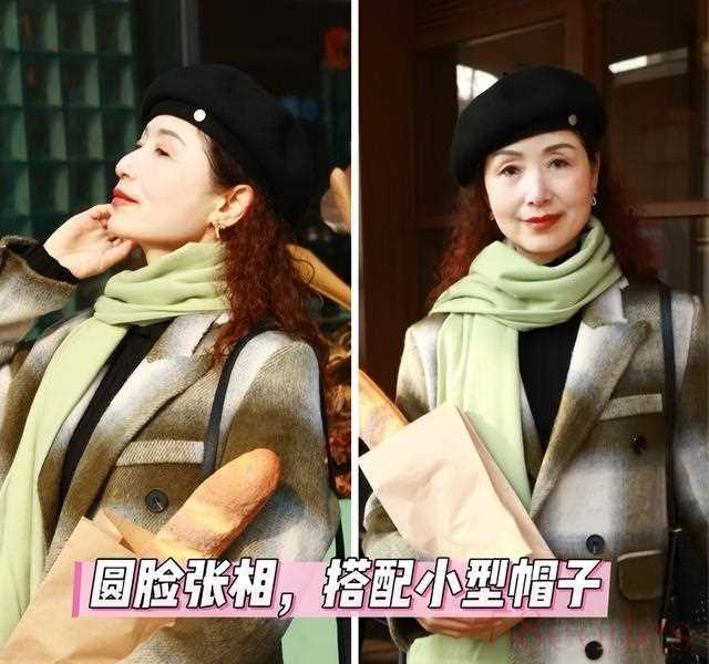 4. 圆脸——贝雷帽别正戴,往后2cm卡在后发际线,脸长视觉+20%,双下巴都跟着隐身。