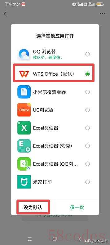 3.随后从弹出的“选择其它应用打开“列表中,选择”WPS Office“项打开。