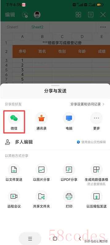 5.在弹出的”分享与发送“界面中,点击“分享给好友”列表中的“微信”项。
