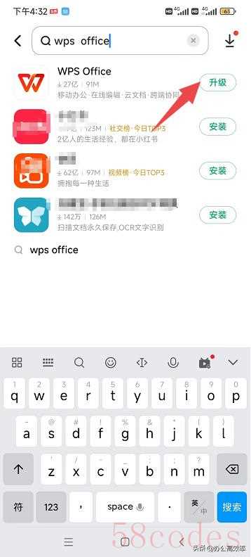 - 首先,我们需要在手机上安装WPS Office程序。如图所示,可以通过手机应用商店进行下载安装。
