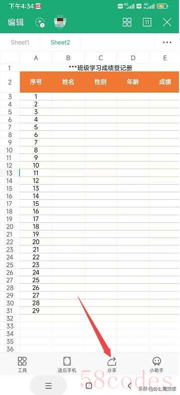 4.当进入WPS Office浏览文档界面后,点击界面最下方的”分享“按钮。