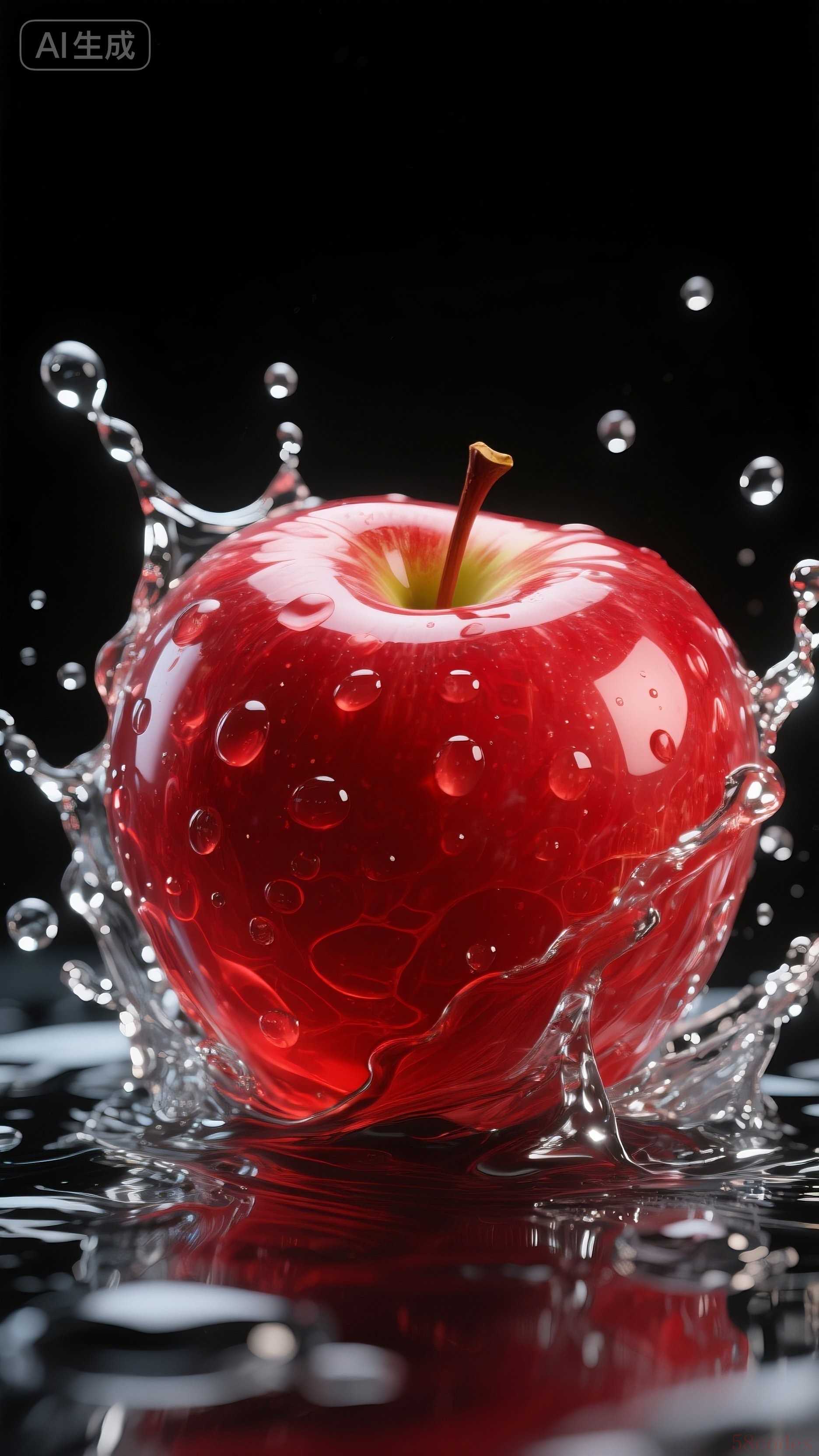 "描述:" 这款壁纸展示一颗饱满、色泽鲜红透亮的红苹果,仿佛刚刚从枝头采摘下来,带着清晨的露珠(或水汽感),质感细腻,水润欲滴。背景简洁,突出苹果本身的诱人色泽和光泽。
